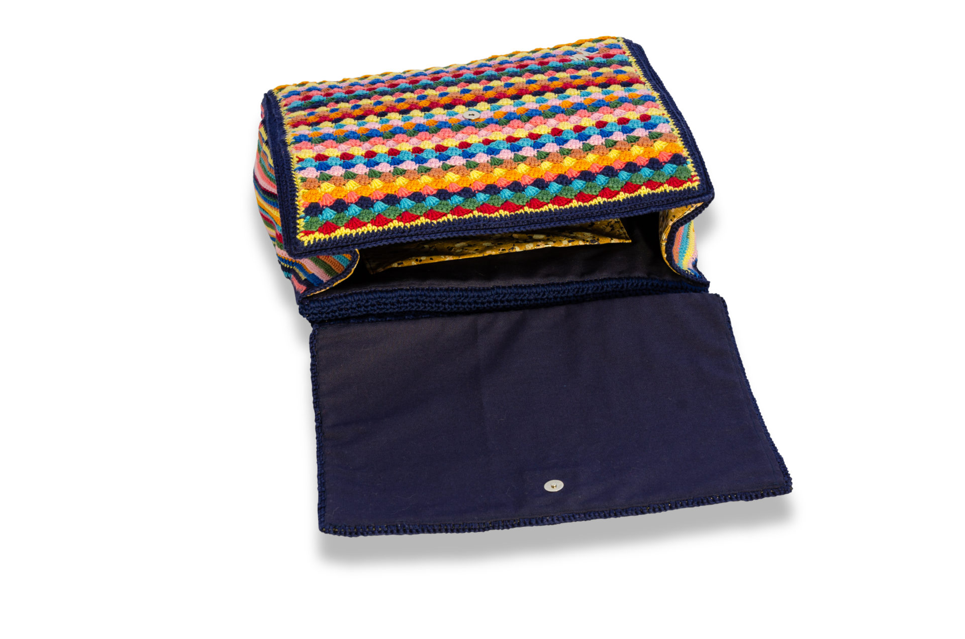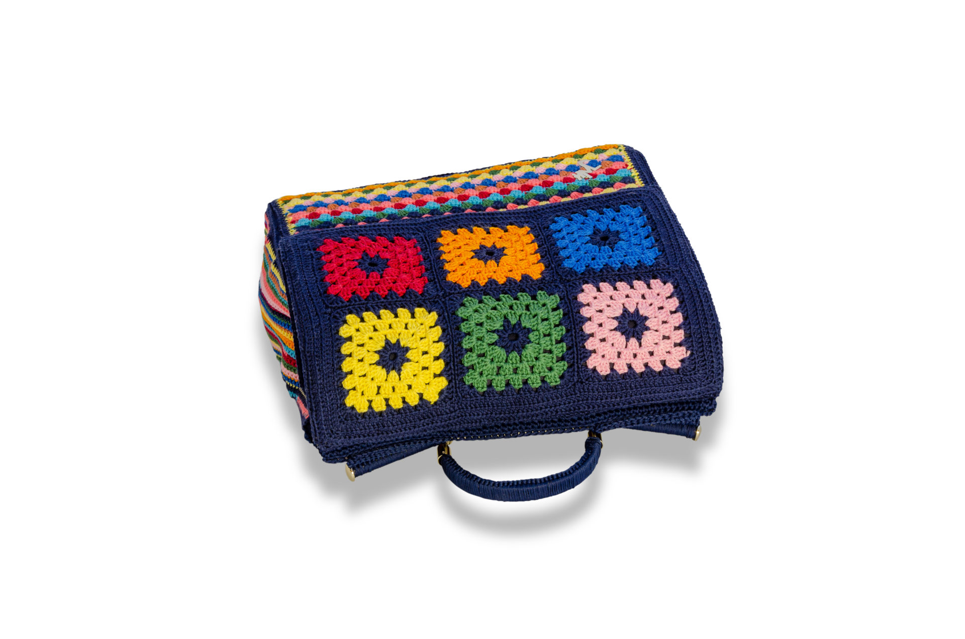 La borsa granny all’uncinetto Curti è un accessorio senza tempo. Coloratissima, ha una spiccata identità e darà un tocco di personalità al vostro look più comodo o semplice: dal jeans fino al tailleur più classico, Curti è perfetta per gli outfit “color block” o total black o total white.