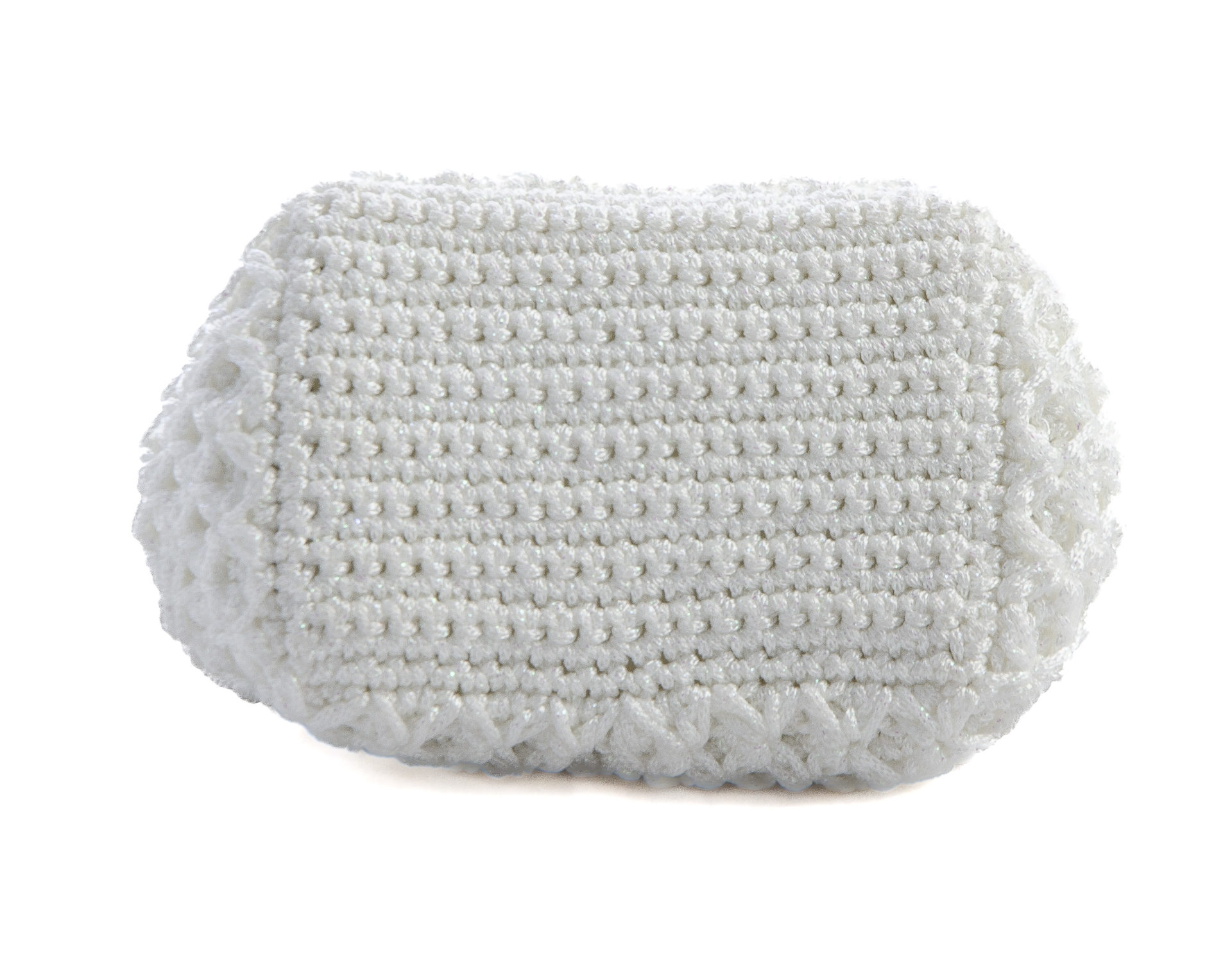 Proposed in white lurex yarn, it is perfect to brighten up an elegant mini-dress at an important party, where you can carry the bare minimum and have fun, thanks to the 110 cm long chain.