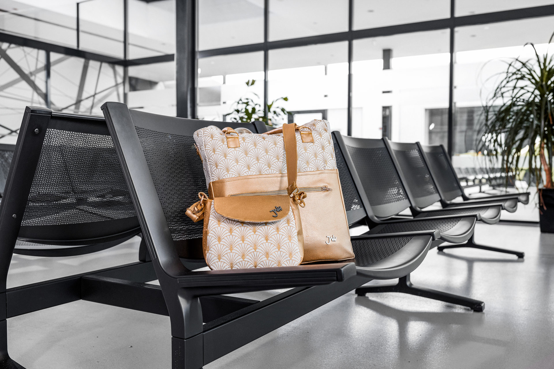 Two additional outer pockets complete the comfort: one side open for quick stowing of a newspaper or other items and a smaller one with zipper.