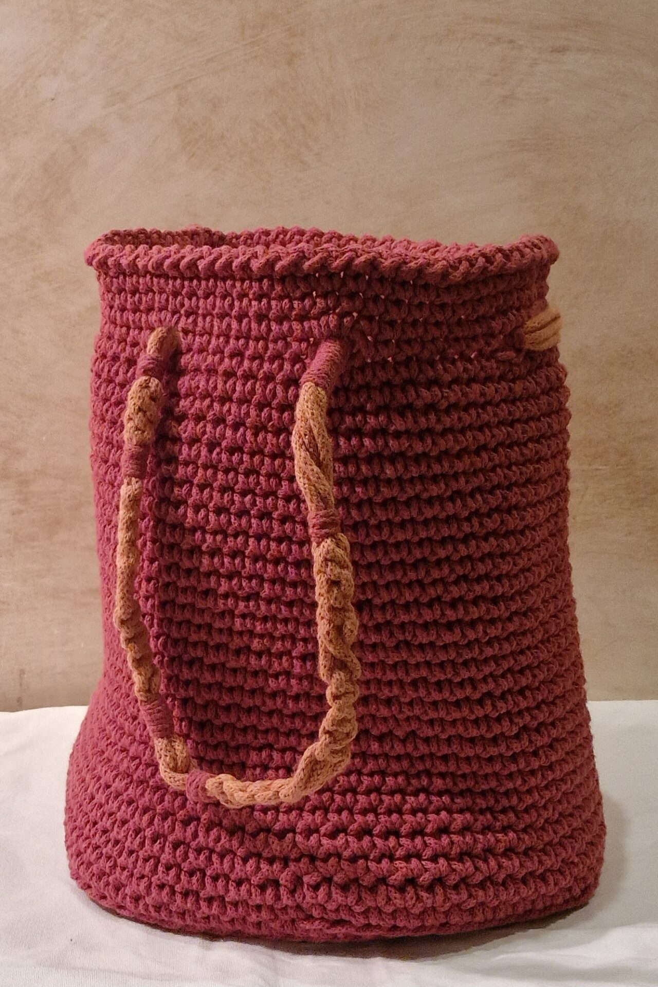 Maxi bucket with handle/shoulder strap, 100% recycled cotton.