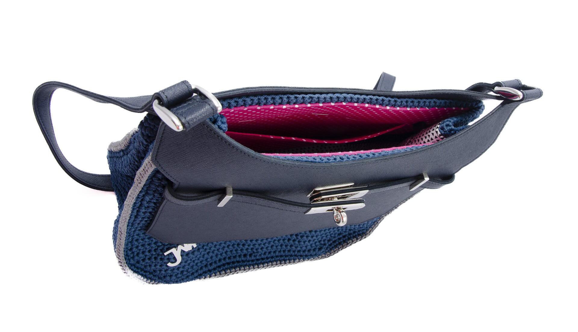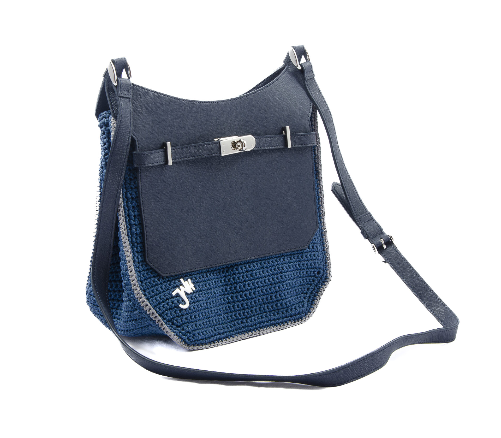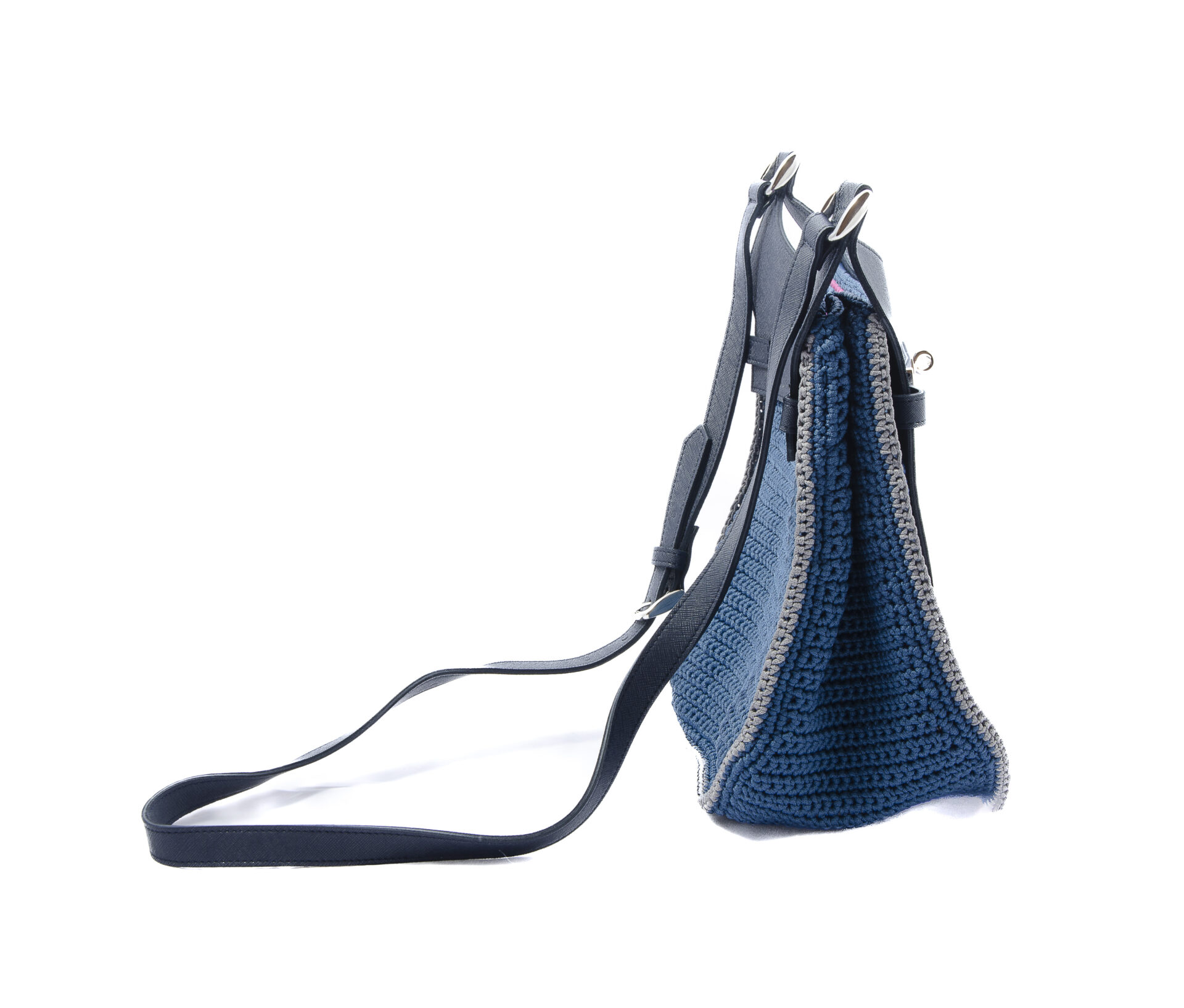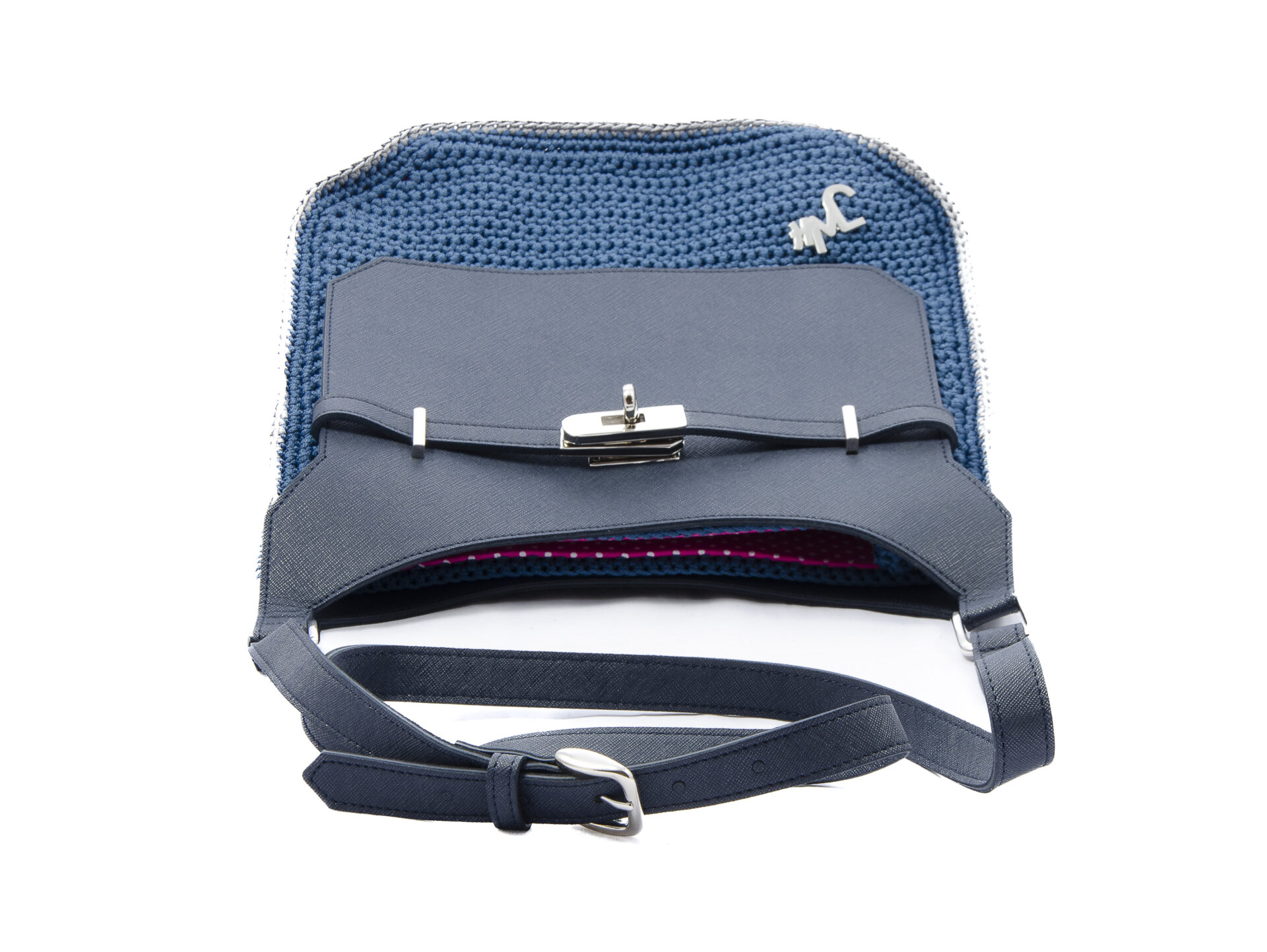 NINA is a clutch bag for every occasion. It is crocheted by skilled hands and finished with a genuine leather flap with an elegant steel swivel clasp. It is a comfortable bag with an adjustable genuine leather shoulder strap. It has a small side pocket on the inside for essentials.